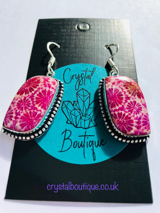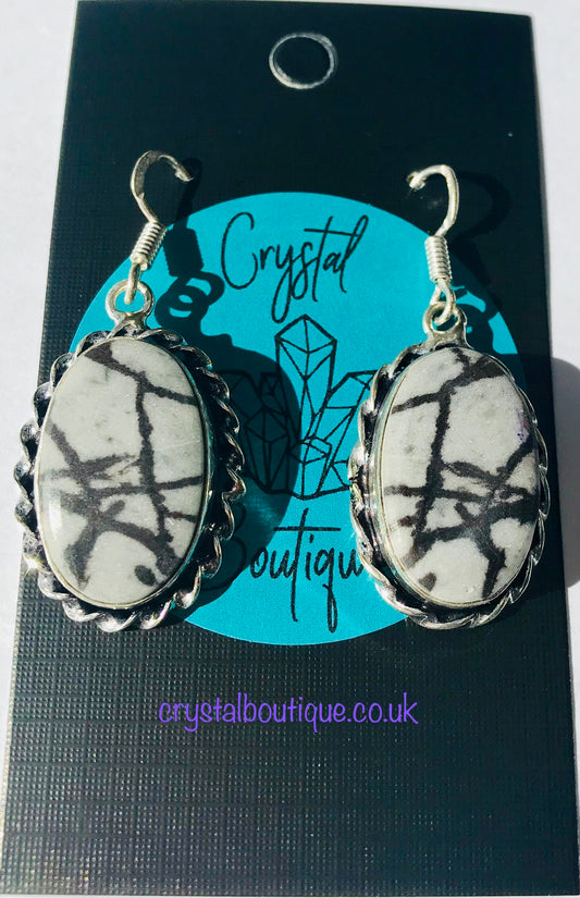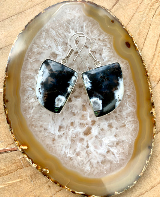 Dendritic Opal Crystal Gemstone Dangle Earrings
