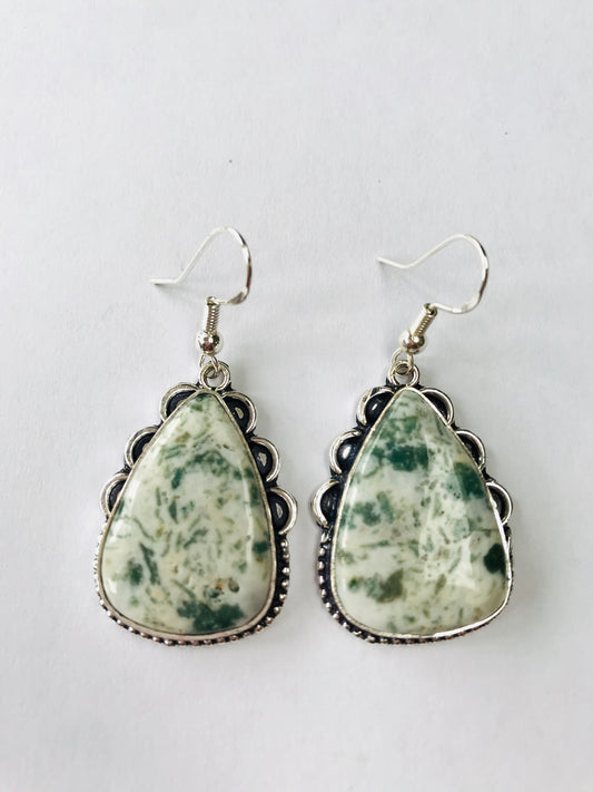 Moss Agate Crystal Gemstone Earrings Green & White - New Beginnings