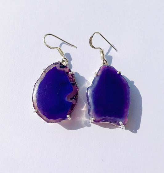 Druzy Crystal Geode Slice Gemstone Earrings Purple Collection - Enhances creativity