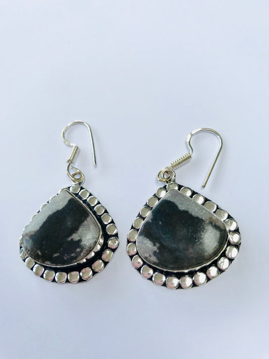 Australian Outback Jasper Crystal Earrings - 925 Silver - Grey & Black