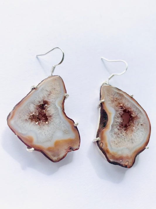 Druzy Crystal Geode Slice Gemstone Earrings Nude Collection