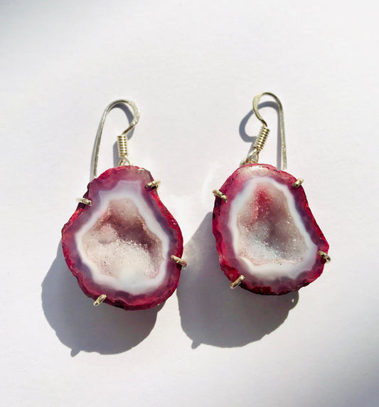Druzy Crystal Geode Slice Gemstone Earrings Red Collection - Enhances creativity