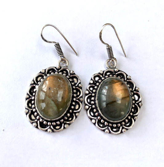 Labradorite Crystal Gemstone Dangle Earrings - Energy Enhancing
