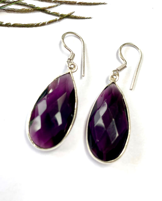 Amethyst Faceted Crystal Teardrop Gemstone Dangle Earrings