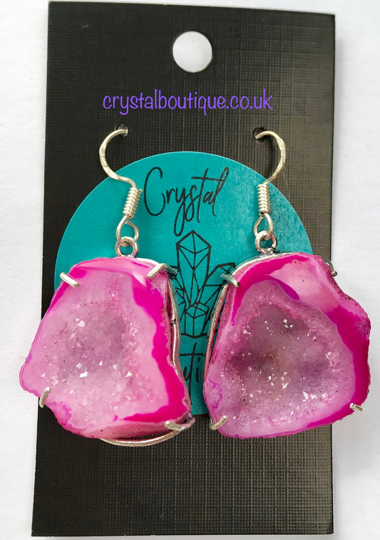 Druzy Crystal Healing Geode Slice Earrings Pink Collection - Good Luck