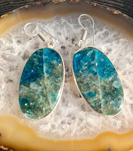 Blue Apatite Crystal Gemstone Dangle Earrings