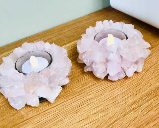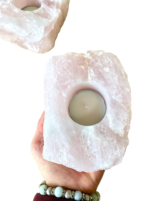 Rose Quartz Natural Pink Tea Light Candle Holder