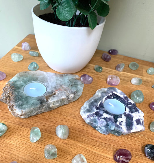 Fluorite Crystal Polished Slice Tea Light Candle Holder