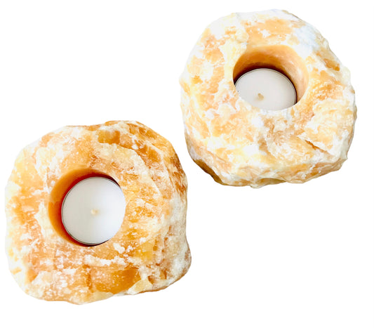 Orange Calcite Rough Tealight Candle Holder