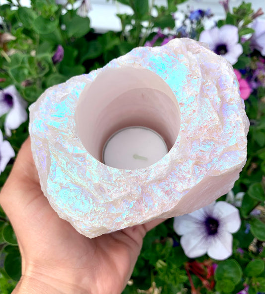 Rose Quartz Aura Plated Tealight Candle Holder