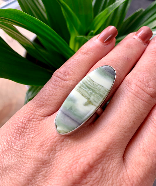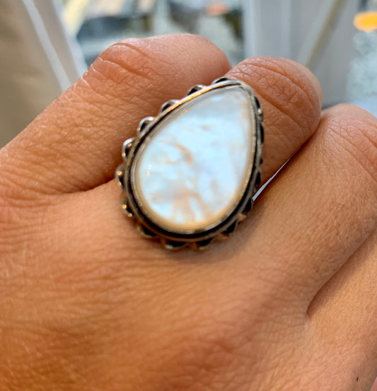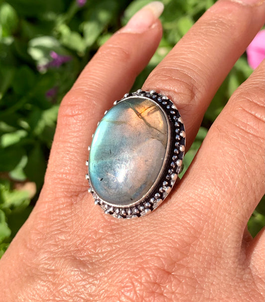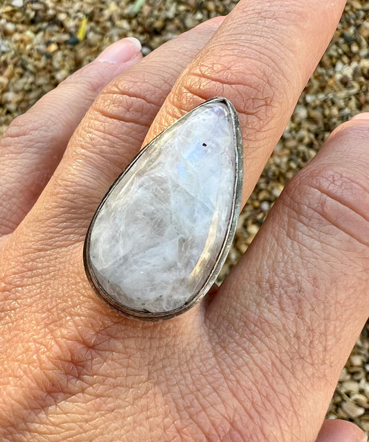 Rainbow Moonstone Crystal Statement Marquise Shape Ring