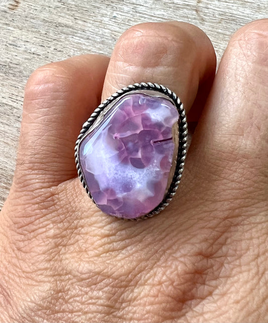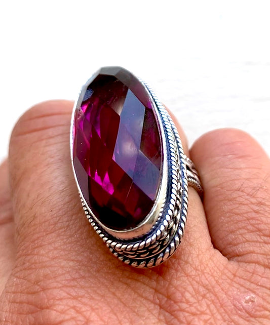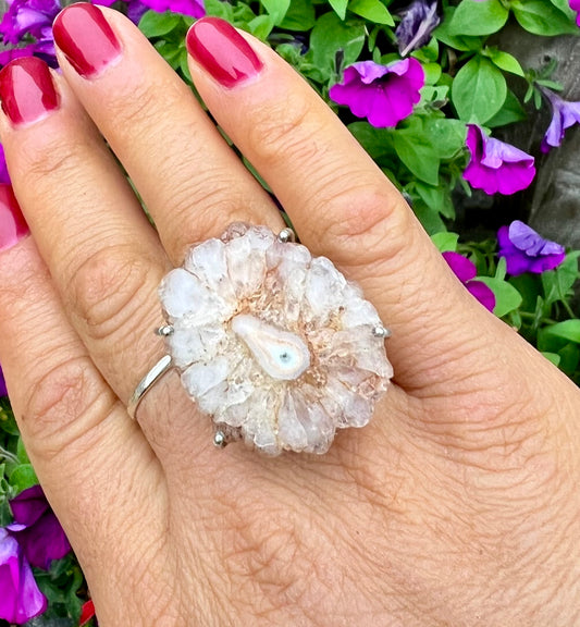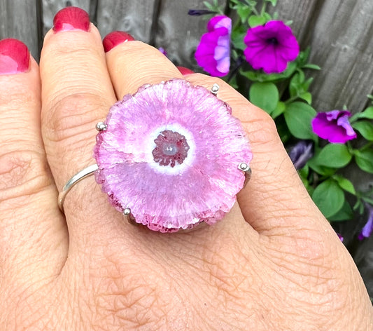 Solar Quartz Dyed Pink Bulls Eye Crystal Ring