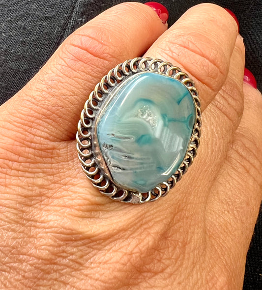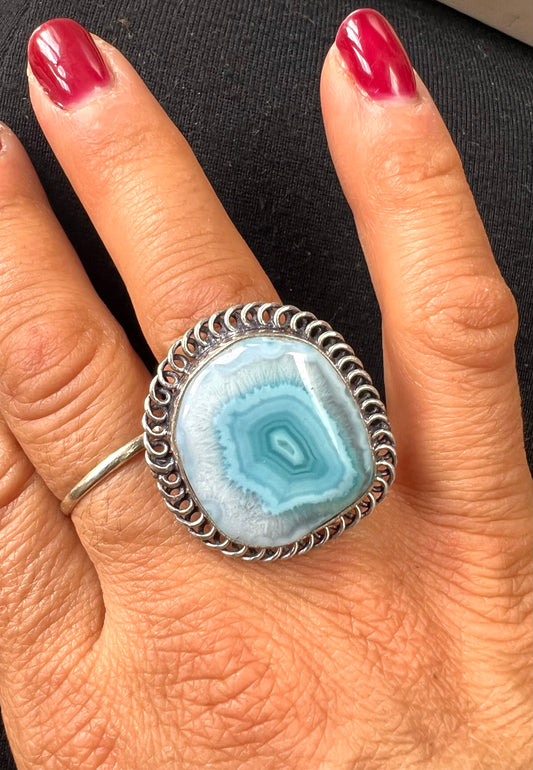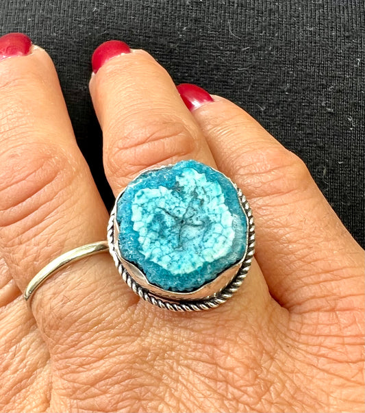 Solar Quartz Blue Swirl Dyed Crystal Ring